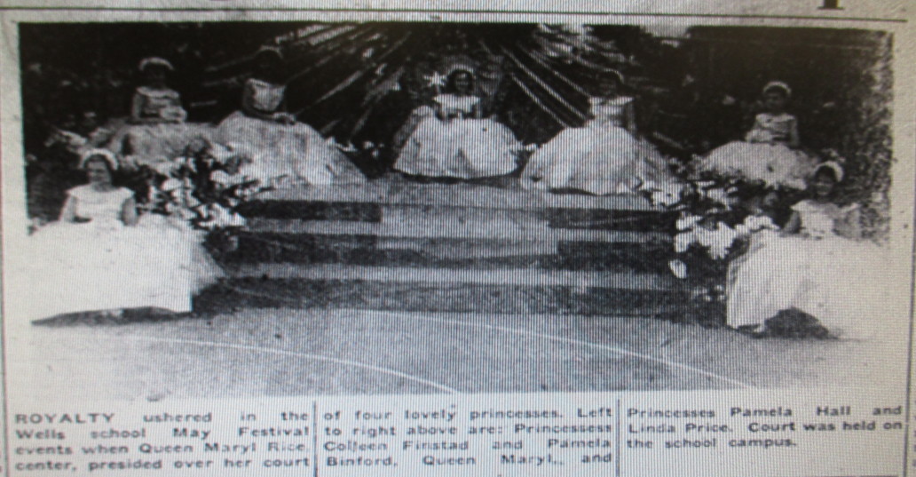 May Day Festival, May 1, 1958. Mary Rice crowned queen.